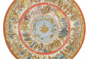 The god Hephaestus puts all his art into making Achilles’ new armor. But mostly he worked on his round shield. He puts first the earth, the sea and the sky with the sun, the moon and all the stars. And then he starts drawing two states side by side. In the first, people have peace. They marry their children with songs and joys and settle their differences with judges.