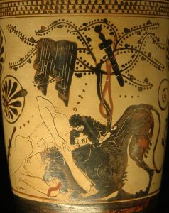 Heracles kills the Centaur Nessus. Black figure, which is found on the neck of an Attic amphora. The artist has been named by the researchers “Painter of Nessos”. Image source: upload.wikimedia.org